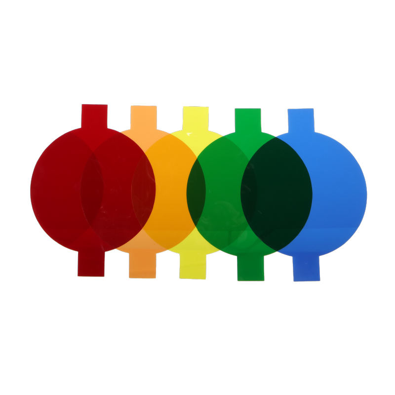 Das Set enthält sechs Farbfolien, mit denen Sie unterschiedliche Lichtstimmungen und kreative Effekte erzeugen. Nutzen Sie die Folien für Akzentbeleuchtung, stimmungsvolle Hintergründe oder farblich abgestimmte Beleuchtungsszenarien. Die Folien lassen sich schnell wechseln und flexibel kombinieren.